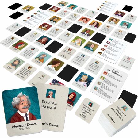 48 cartes des aphorismes ; 5 cartes chronologiques ; Règles du jeu