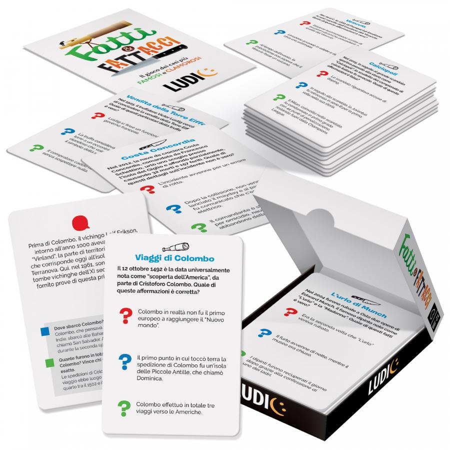 Con questo mazzo di carte sfidi i tuoi amici e scopri enigmi e retroscena di fatti storici famosi, dalle scoperte scientifiche, ai grandi misteri dell’archeologia, dai delitti più celebri alle rapine più clamorose… Per stuzzicare la conoscenza, oltre i luoghi comuni!